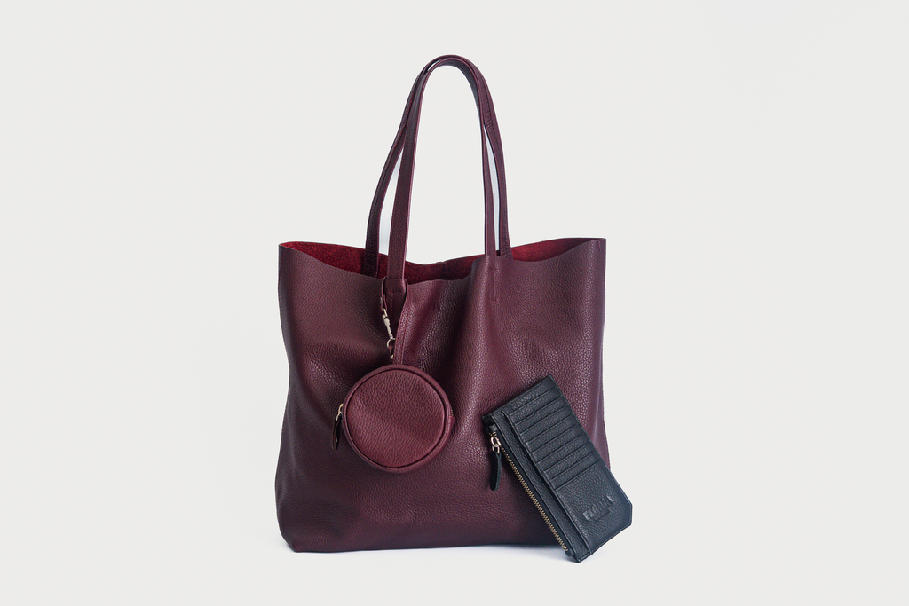 Tote 100% cuero vacuno graneado, con monedero/portallaves.